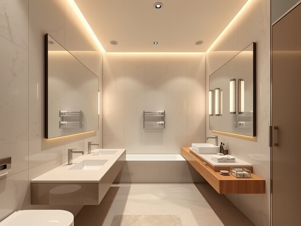 Floating vanities, concealed cisterns, glass partitions, and smart lighting giving you hotel-style vibes at home.