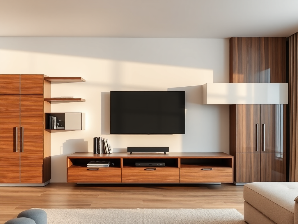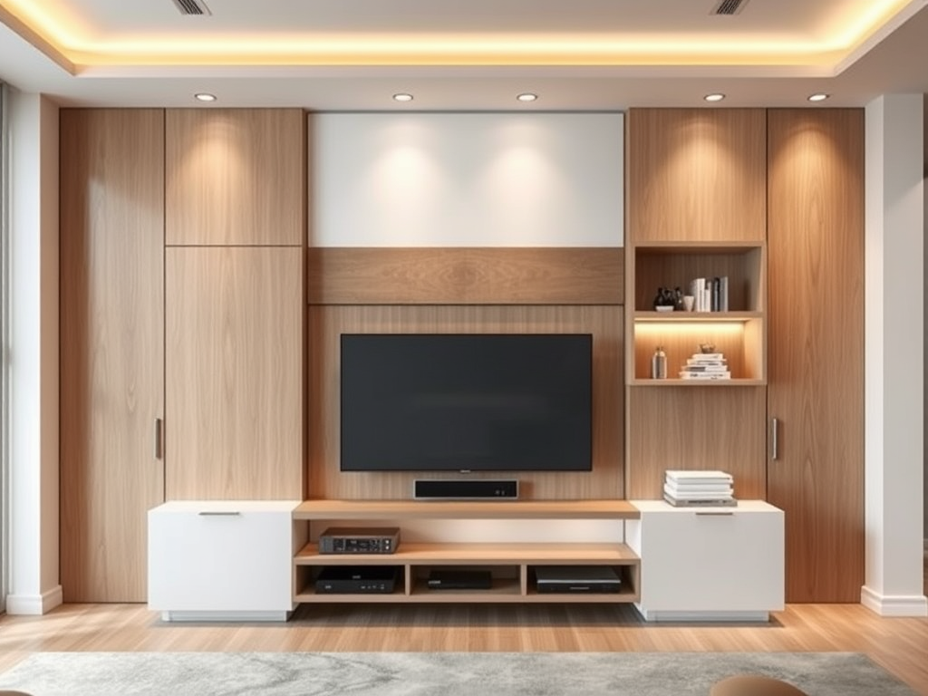 Designer feature walls, floating shelves, hidden wiring because your living room deserves a little drama (the good kind).